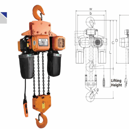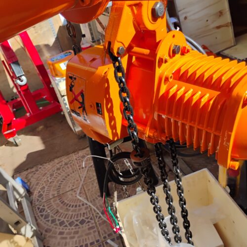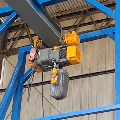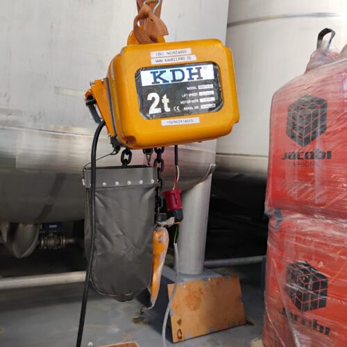 Tecle Eléctrico Industrial 2 Toneladas, 380 V, 6 mts levante, 6.6 mt/min, 1 ramal Cadena G80 10 mm, galv.